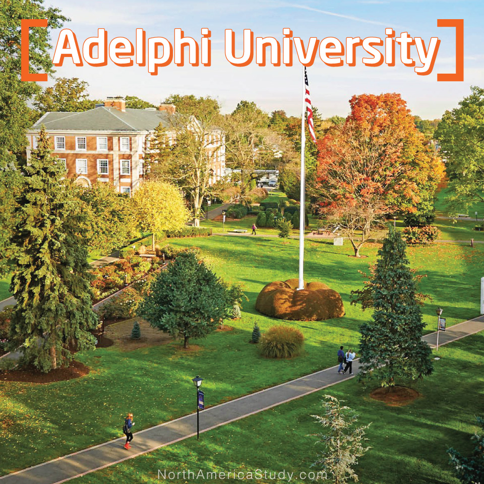 Adelphi University ก่อตั้งขึ้นในปี ค.ศ. 1896 เป็นเวลาทั้งสิ้น 124 ปี ตั้งอยู่ในเขต Long Island รัฐนิวยอร์ก มีทั้งหมด 4 แคมปัส ได้แก่ Garden City, Manhattan, Suffolk County, Hudson Valley จัดการเรียนการสอนตั้งแต่ระดับปริญญาตรีไปจนถึงปริญญาเอก มีสาขารองรับกว่า 50 สาขา เช่น Business, Economics, Finance, Economics, Marketing, Computer Science, Nursing, Sport Management, Psychology เป็นต้น