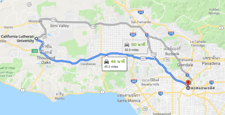 California Lutheran University ตั้งอยู่ที่เมือง Thousand Oaks รัฐ California อยู่ห่างจาก LA ไปทางตะวันตกเฉียงเหนือ (Northwestern) ใช้เวลาขับรถ 45 นาที