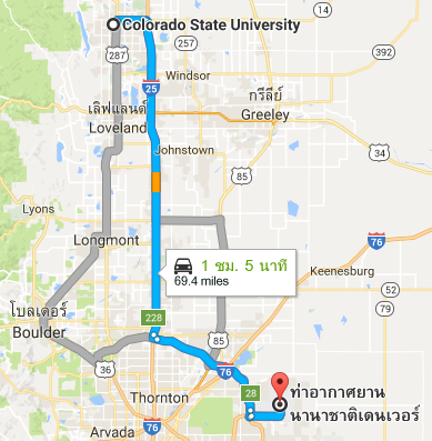 การเดินทางจากสนามบิน Denver International Airport ไปยัง Colorado State University
