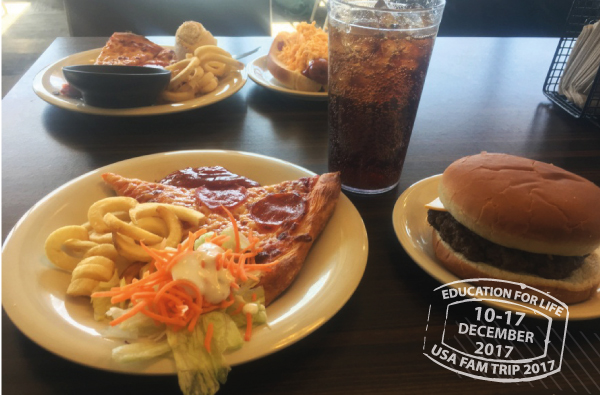 มื้ออาหารแบบอเมริกันอย่างแท้จริงเลยค่ะ มีทั้งพิซซ่าและเบอร์เกอร์ อร่อยมากเลยค่า